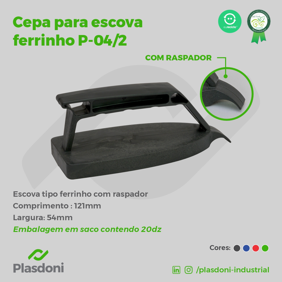 Fundada em 2005, a Plasdoni Industrial de Plásticos Ltda., empresa localizada em Piracicaba (SP), cidade natal de seus fundadores, produz cepas (base) e capas para vassouras, rodos, pás para coleta de lixo, rastelos e escovas domésticas e industriais.