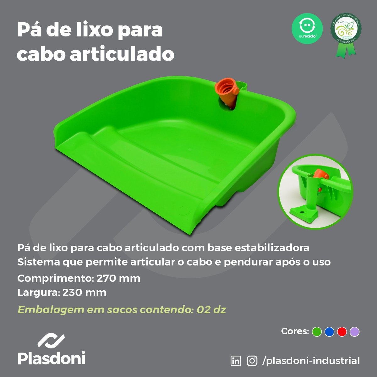 Consciente de sua responsabilidade com o meio ambiente, a Plasdoni utiliza matéria-prima reciclada, oferecendo aos seus clientes produtos de alta qualidade com design moderno e cores compatíveis com as tendências de consumo mundial.